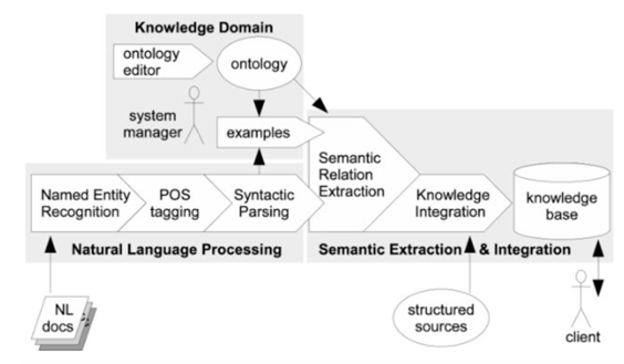 그림 15. 자연어 처리 (Natural Language Processing : NLP) 기술을 활용한 지식 추출 개념 (그림 출처: https://www.researchgate.net/publication/237247262_Ontology_Driven_Knowledge_Extraction_System_with_Application_in_e-Government)