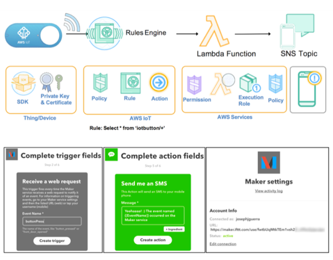 그림 9. IFTTT 기반의 시스템 제어 개념 (그림 출처: https://medium.com/@josephjguerra/aws-iot-button-setup-with-the-new-mobile-app-and-ifttt-1d5342f045ce)